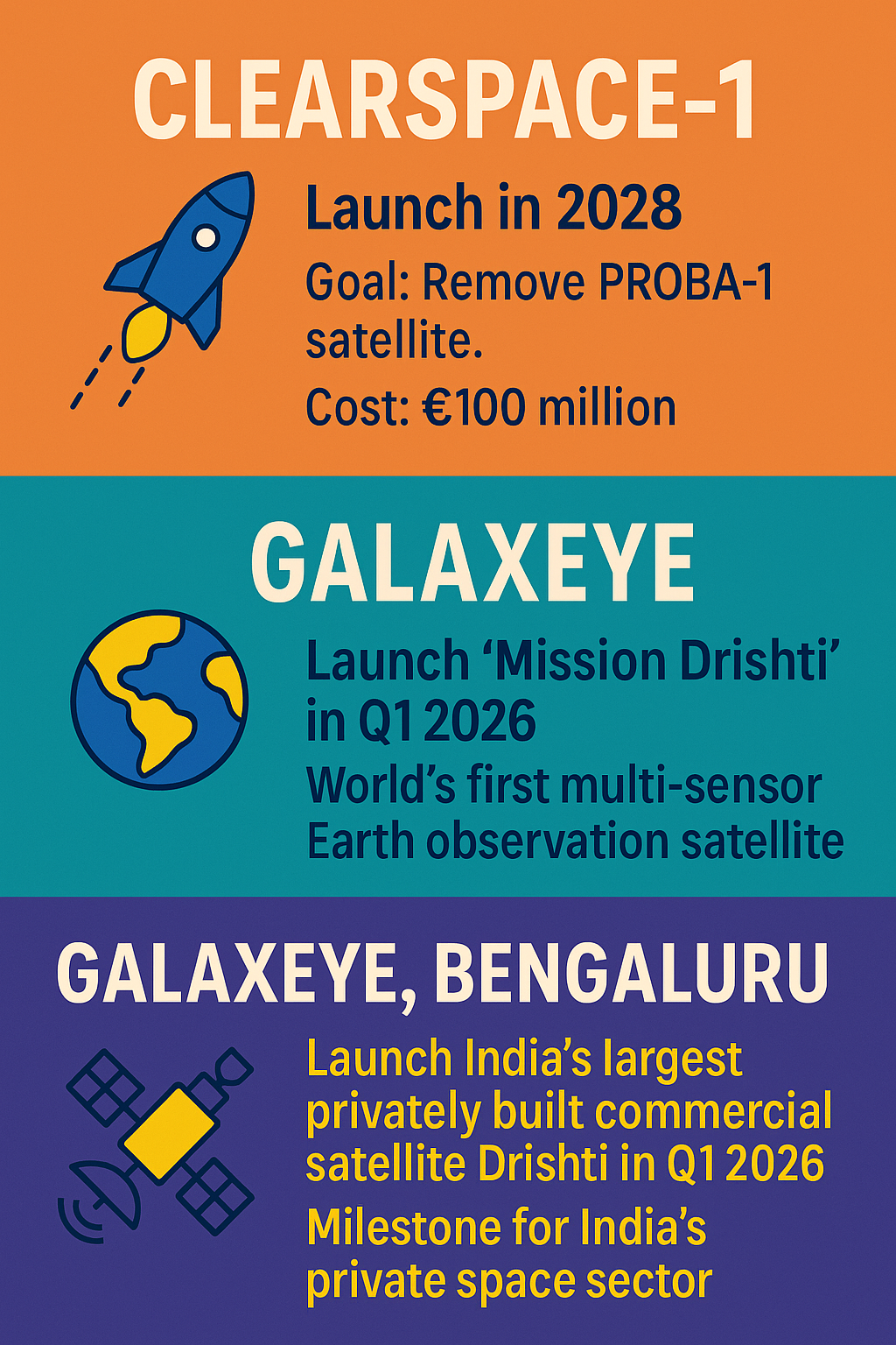 Emergence of Sustainable Space Operations: Debris removal missions like ClearSpace-1 highlight increasing focus on space sustainability and establishing new economic sectors for orbital maintenance (ExTerraJSC), (Taylor Wessing).