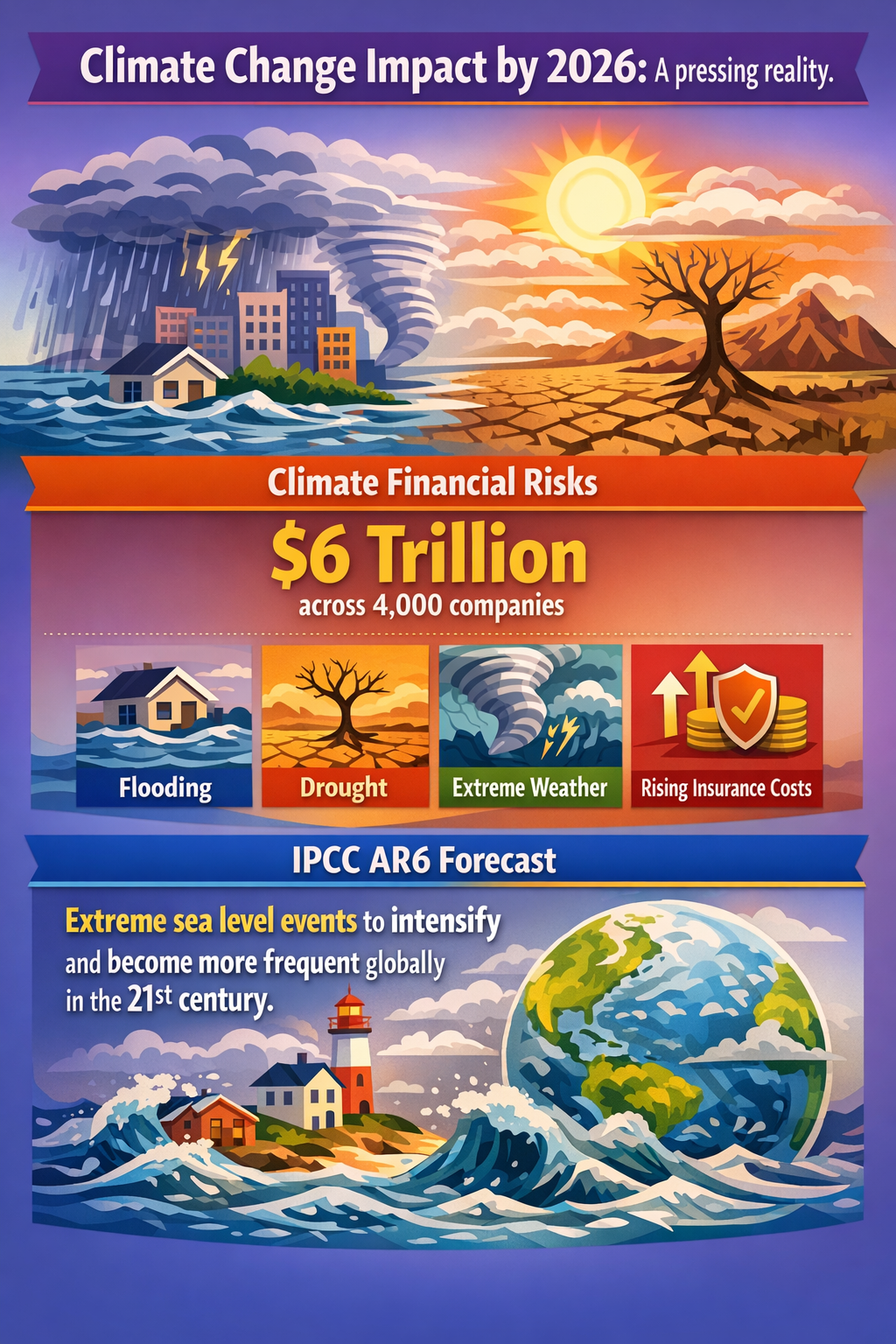 Adding to this pressure, climate-related financial risks already surpass $6 trillion across approximately 4,000 large companies, driven by flooding, drought, extreme weather, and rising insurance costs, which threaten asset values, supply chains, and profitability (Chris Marquis, 2026). The financial muscle at risk extends far beyond the insurance industry itself, spanning corporates, investors, and governments who depend on accurate risk pricing and capital reserves.