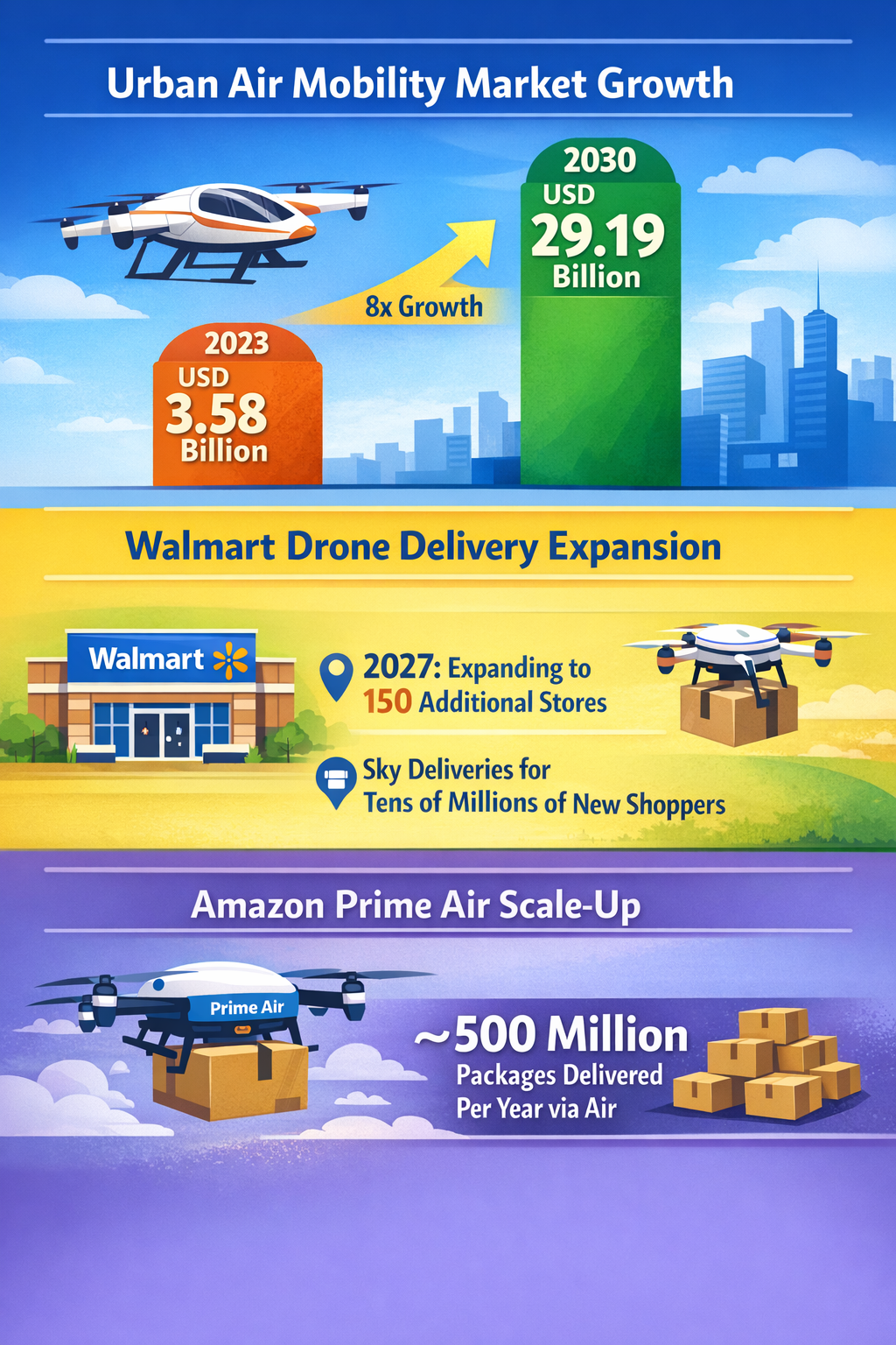 | Vertiport & Infrastructure Development | Accelerating | Heightened mentions around public/private vertiport buildout and air traffic management | Private-sector-led vertiport construction, integration with AI-based air traffic control, and urban mobility networks (Metropolis partnership, Skyway-Future Flight collaboration) are gaining pace, indicating infrastructure readiness rising in parallel with vehicles. |