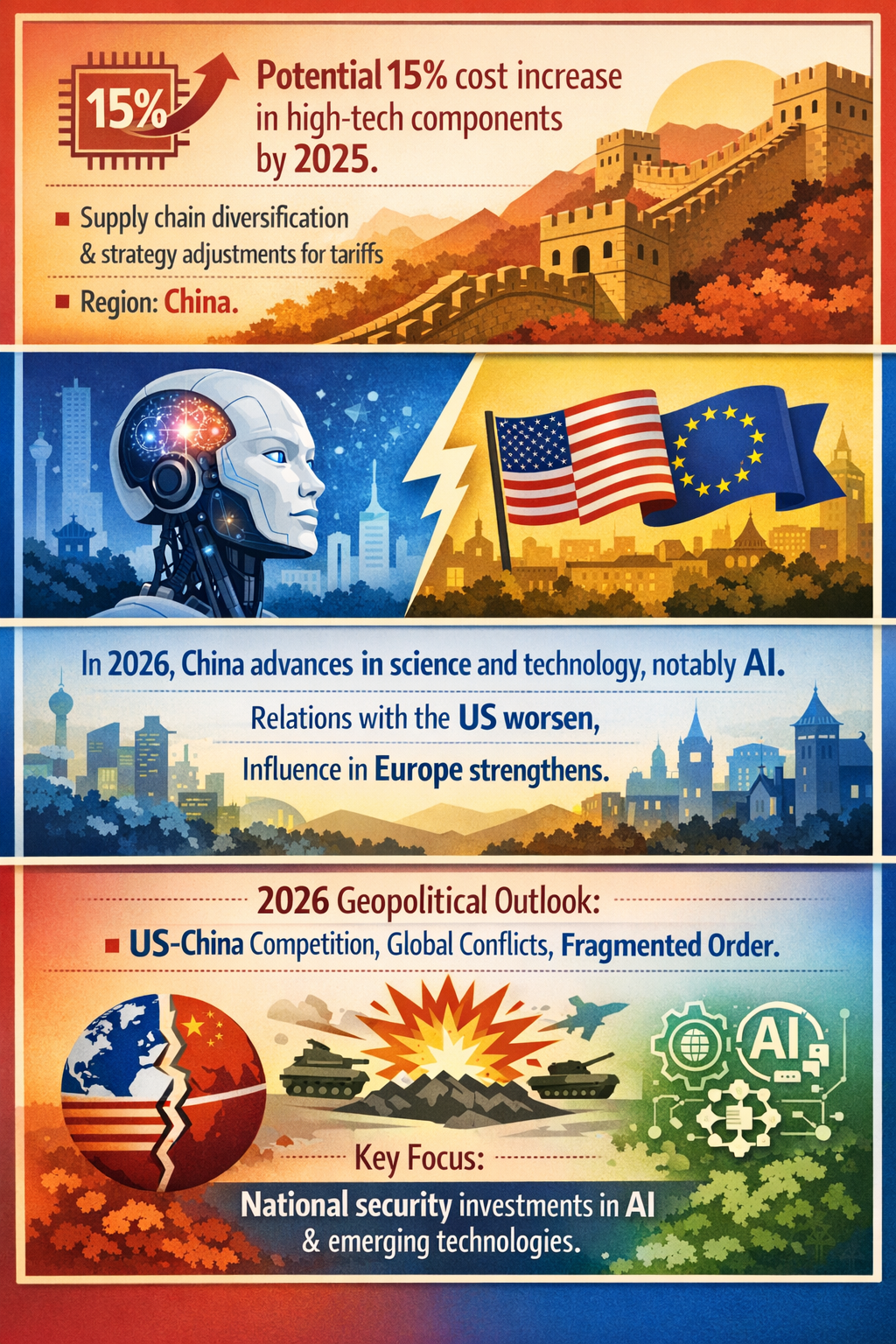 - Geopolitical Instability: Regional trade tensions may escalate into conflicts, disrupting global commerce and slowing development in AI and other critical technologies.