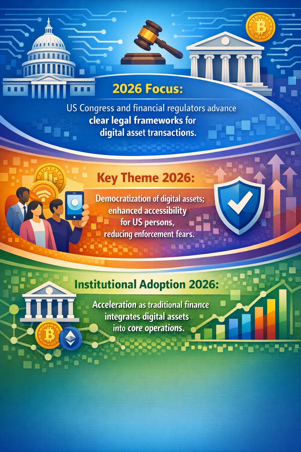 - The key theme leading into 2026 is democratization of digital assets-making digital assets accessible to US persons without the fear of imminent enforcement action. Mondaq. https://www.mondaq.com/unitedstates/fin-tech/1739516/crypto-in-2026-the-democratization-of-digital-assets