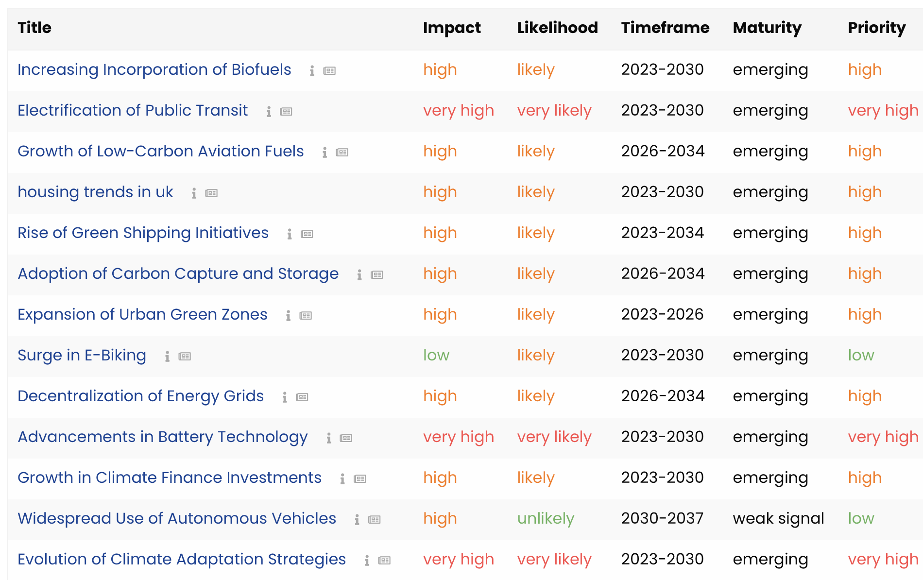 Go beyond static reports. Visualise how signals evolve week by week, showing which themes are accelerating, stabilising or fading.